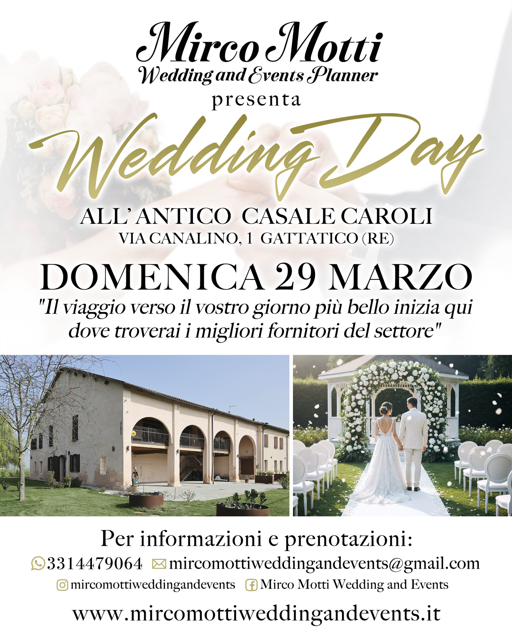 Mirco Motti Wedding & Events Planner nasce dalla passione per l’organizzazione di matrimoni ed eventi, con l’obiettivo di trasformare ogni occasione speciale in un’esperienza unica e indimenticabile.